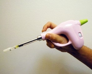 電動注射器を使えば、細い針でもゆっくりと麻酔液を注入することが出来るので、
